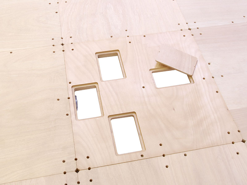 De standaardpanelen hebben een handzaam formaat van 1000 x 1000 mm, gemaakt van een lichte PU-schuim kern met stevige houtomranding voor maximale levensduur.